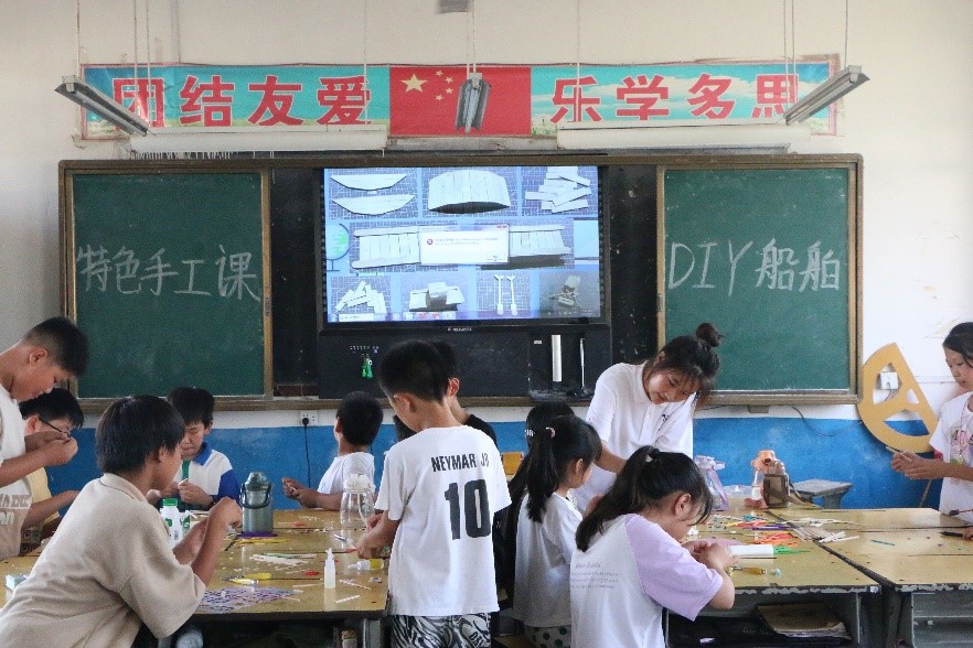 在支教老师的带领下孩子们顺利完成船舶、蚕宝宝等手工的制作,设计出孩子们独有的小船。在不远的将来,这艘承载着梦想的小船将会驶向远方,扬帆起航、乘风破浪。