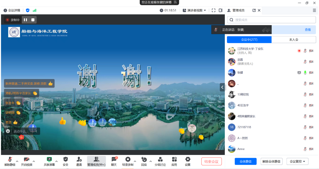在会议最后的互动问答环节,家长们积极提问感兴趣的问题,巫蓉副书记与辅导员丁安东、葛斐老师一起耐心细致地逐一解答。家长与老师是孩子发展路上的引行灯,相信在家校的共同托举下,同学们一定会在江科大成长为独立、自信、有担当的“江科大船海人”,在时代的潮流中乘风破浪,扬帆起航,奔赴属于自己的美好未来!