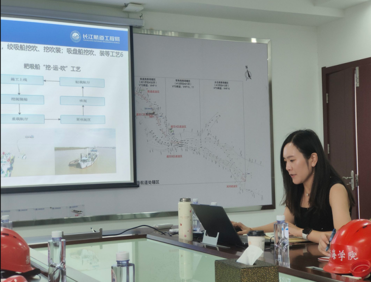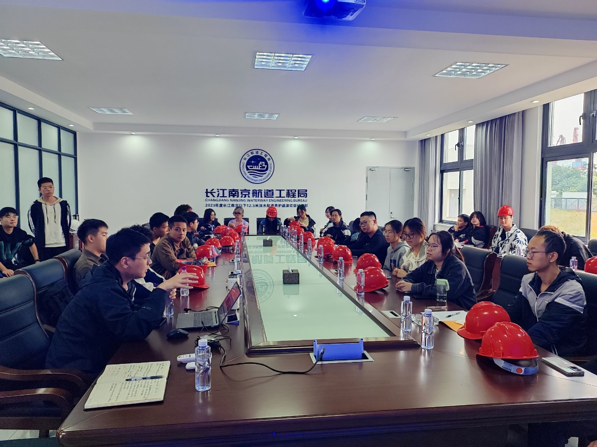 为增强学生对港航专业的认知,深入了解行业发展,通过访企拓岗建立校企合作平台,拓宽就业渠道,促进高质量就业,10月10日,91网站 港口航道与海岸工程专业教研室主任迟艺侠、专业课教师吴祥柏带领2021级港航专业全体学生赴长江南京以下12.5米深水航道养护疏浚项目现场开展认识实习。长江南京航道工程局人力资源部蒋雪超部长一行为本次实习提供了精心安排和热情接待。
