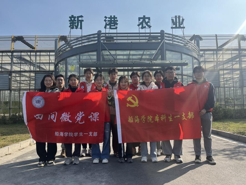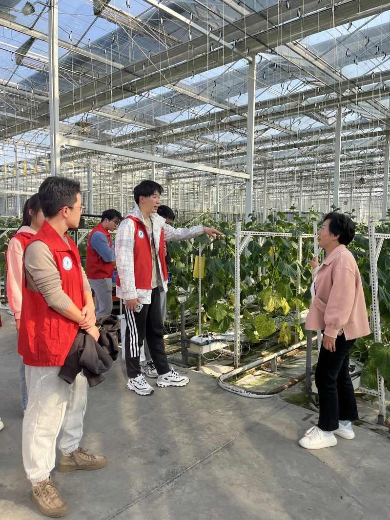 新港农业园区隶占地面积234亩,采用先进的无土栽培技术,智能化控制系统,实现自动化育苗、栽培、收割以及加工、销售,是镇江现有最大的智能温室及现代农业综合示范基地。91网站 学生一支部党员们首先走进玻璃温室大棚,参观现代农业。一根根细密的牵引绳上爬满了绿意盎然的藤蔓,藤蔓上挂满了青翠欲滴、可爱短小的水果黄瓜,它是新研发的品种“玉秀2号”。它的口感相比普通黄瓜更为清脆香甜。在生产小番茄的大棚内,能看到一个个蜂箱,“这里的小番茄不使用激素,全部采用雄蜂授粉,保证食品安全健康,能吃出来小时候的味道”讲解员这样介绍道。