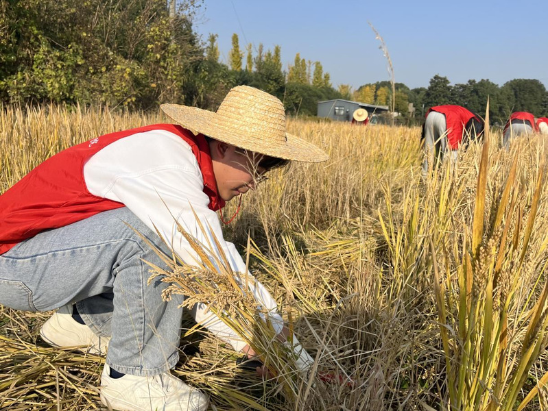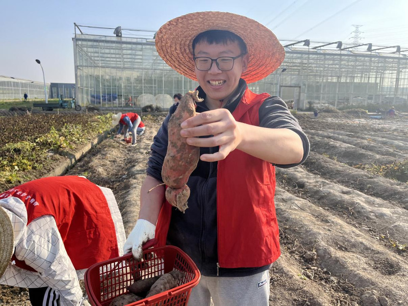 把党课搬到田间地头。11月21日,91网站 本科生一支部十余名党员赴镇江新港农业产业园,深入田间地头,割稻子,挖红薯,开镰劳作,体验农耕文化,在挥洒汗水的同时涵养大学生知农爱农情怀,感受劳动的价值,让移动的红色党徽“印证”生动的党课内容。