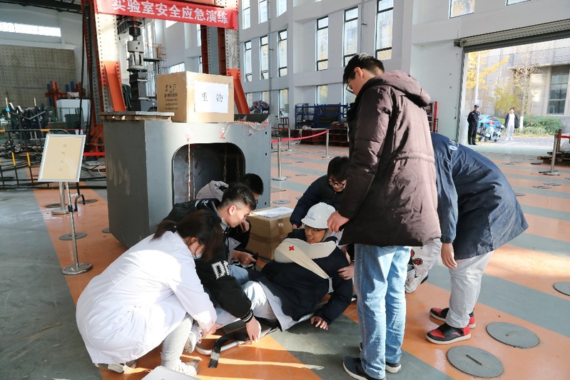 12月5日下午,我院和土建91网站 在重装实验楼联合举办行车吊装重物砸伤学生事故应急演练,本次演练由校实验室管理处主办,91网站 和土建91网站 联合承办,91网站 部分师生、安全保卫处、实验室管理处及校医院医护人员参演,材料、自动化、机械、能动、海装院等单位分管领导、实验室主任、安全员等参加观摩,李木旺副校长出席并进行现场演练指导。