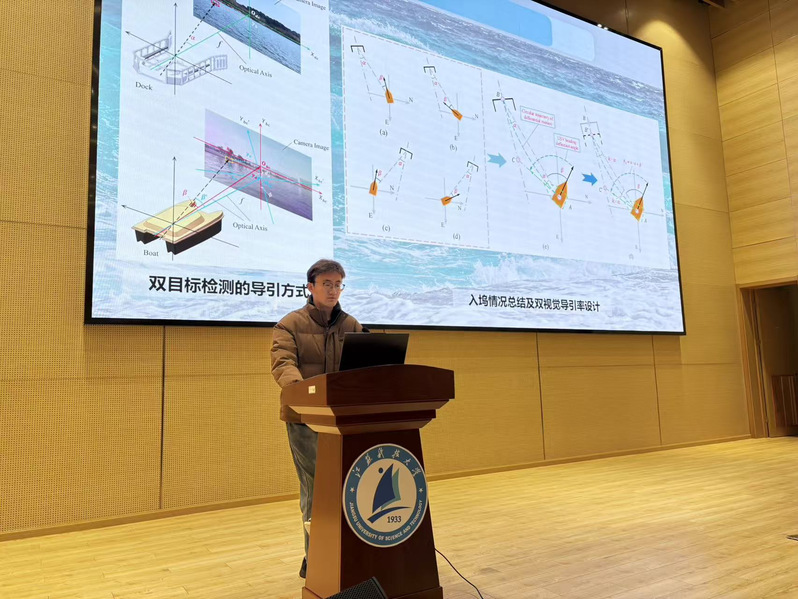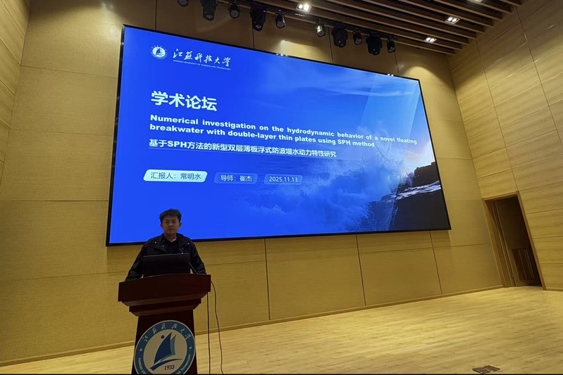 卢莉莉同学围绕新型浮式防波堤三维试验研究展开汇报,针对深远海海浪消减的核心需求,对比传统固定防波堤的应用局限,详细介绍了波浪水槽试验布置、多类型测量设备应用等关键环节,通过观察波浪砰击、翻卷等现象及分析相关系数变化,初步证实该新型浮式防波堤对长周期波具有优异的消波性能。
